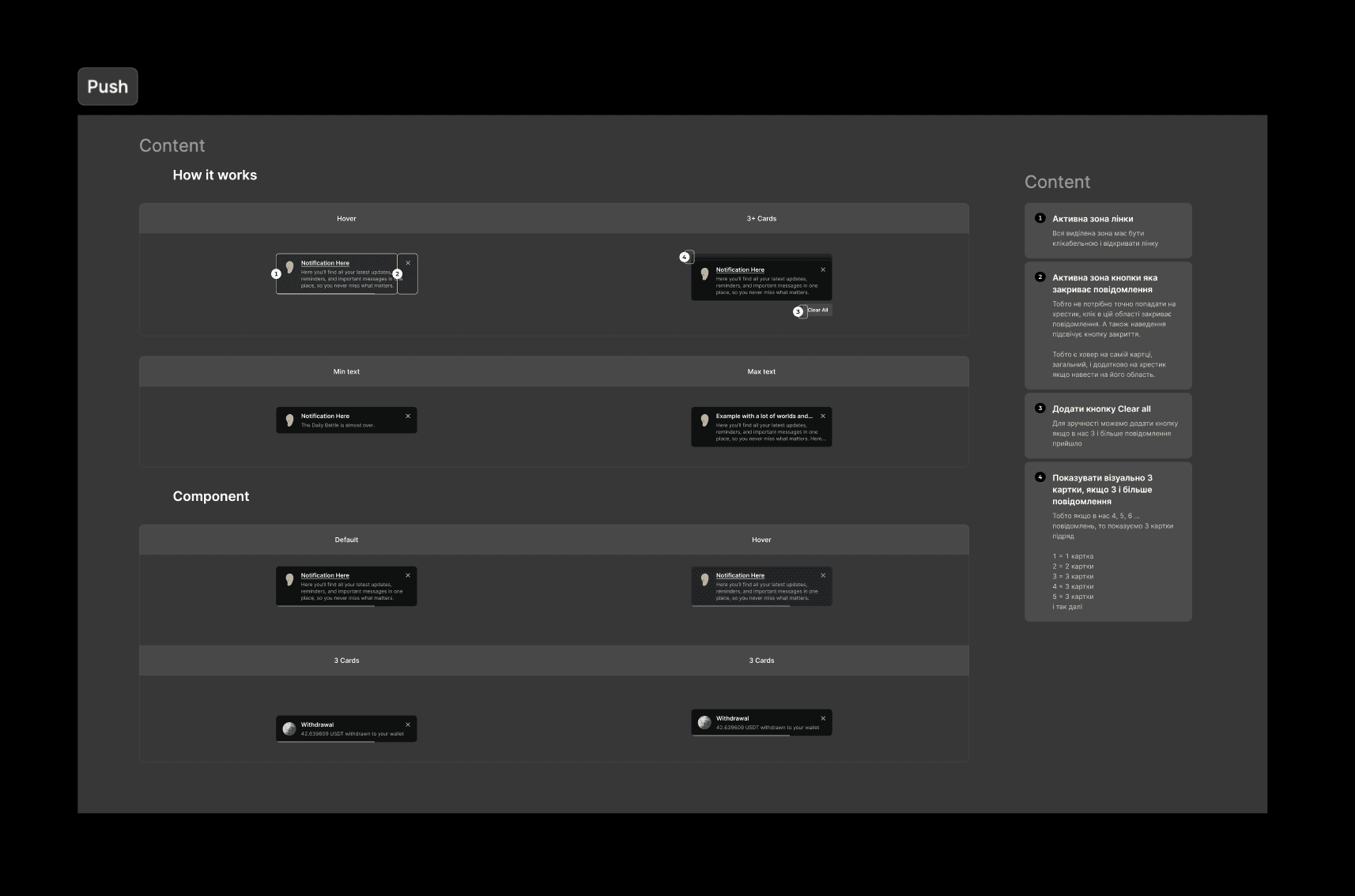 I created the notification design and, on my own initiative, proposed several enhancements: